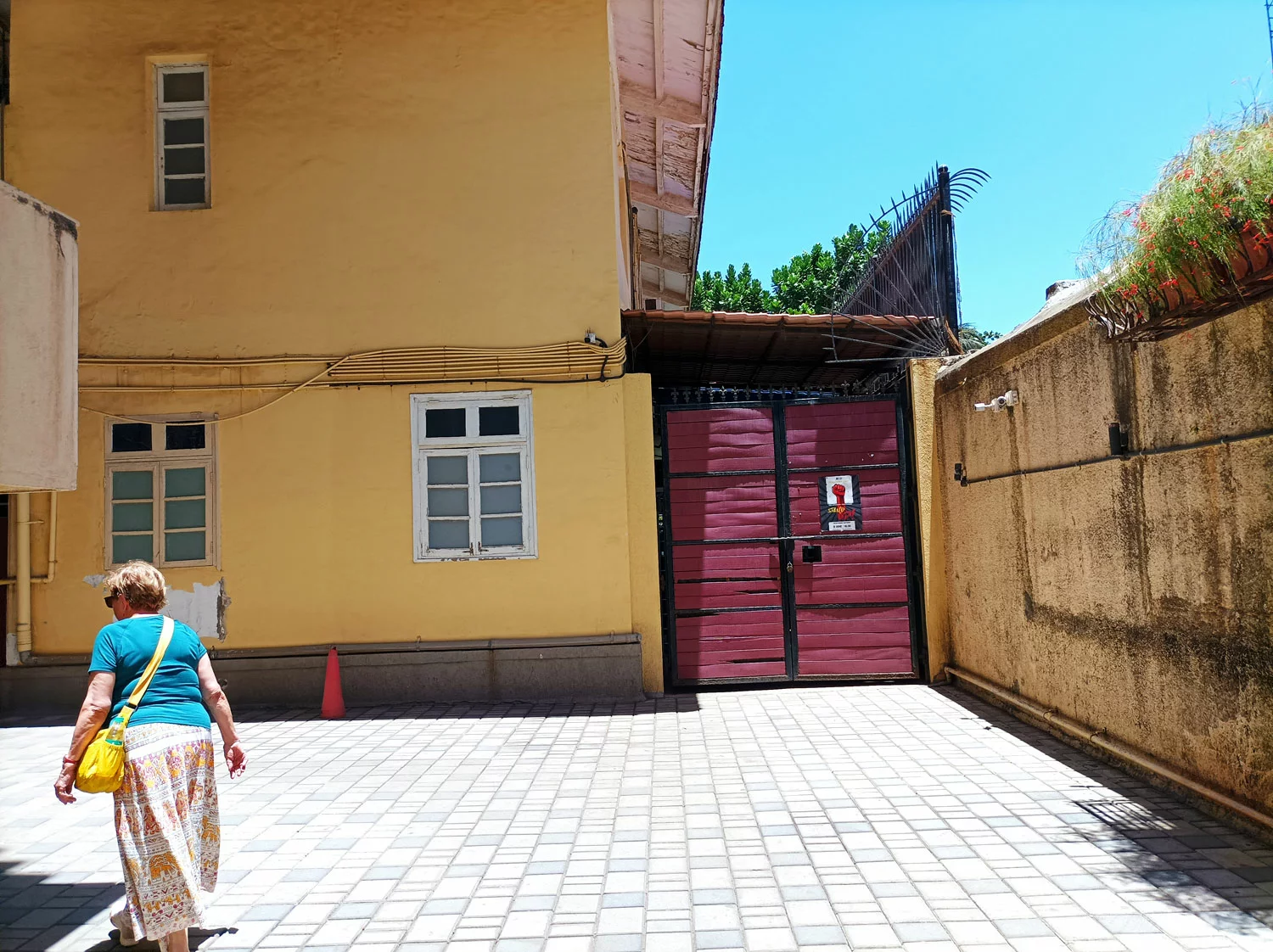 Das gelbe Haus war meine Schule. Hinter der roten Tür ist ein großer Garten - früher unser Pausenhof - mit Zugang zum Meer. Wir Schulkinder sind früher öfters (war natürlich verboten!) über die Felsen zum Breach Candy Schwimmbad herübergeklettert. Leider durften wir nicht hinein! Keine Fotos! Überall security.