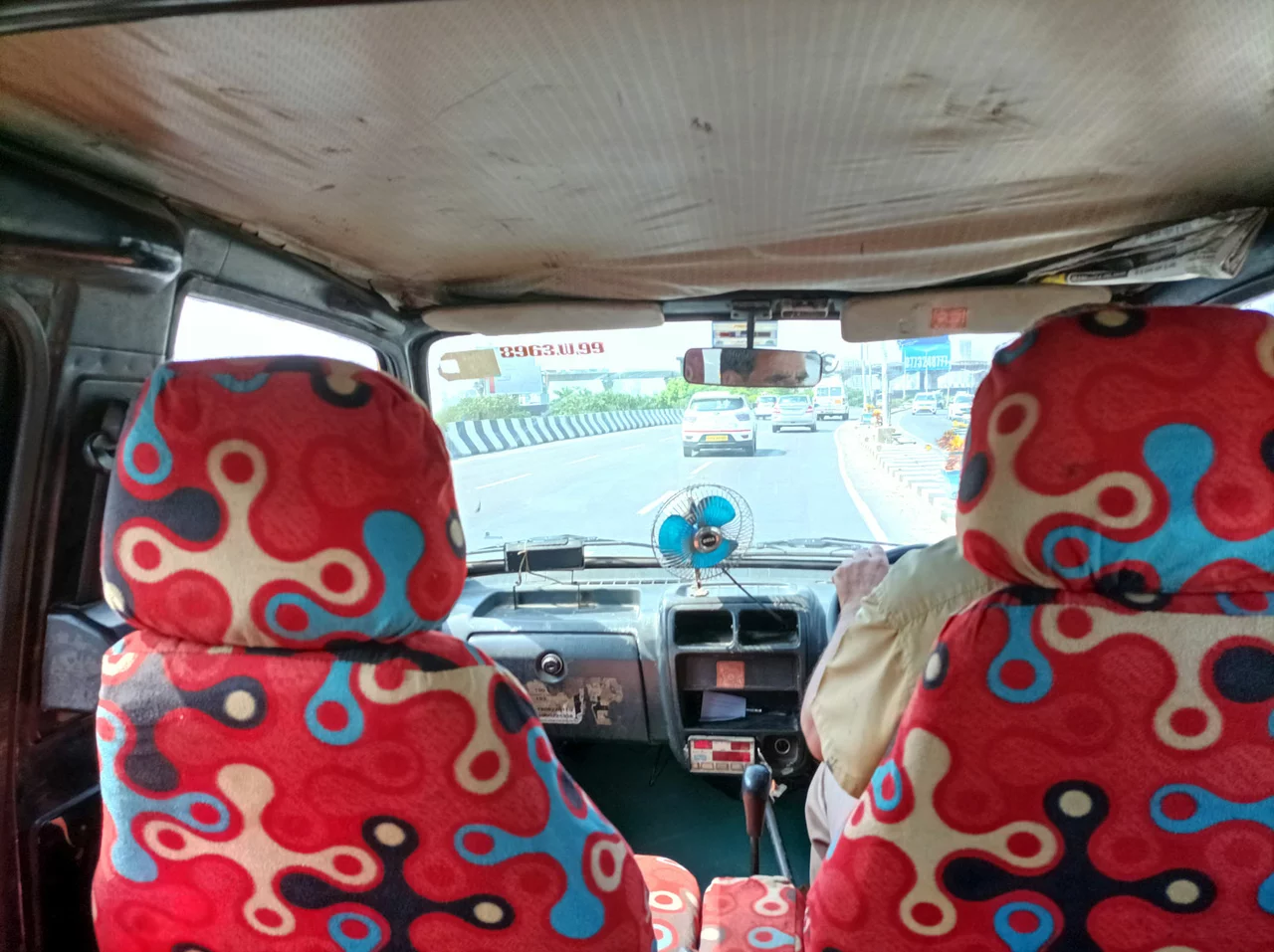 Unser klappriges Taxi vm Flughafen zum Hotel